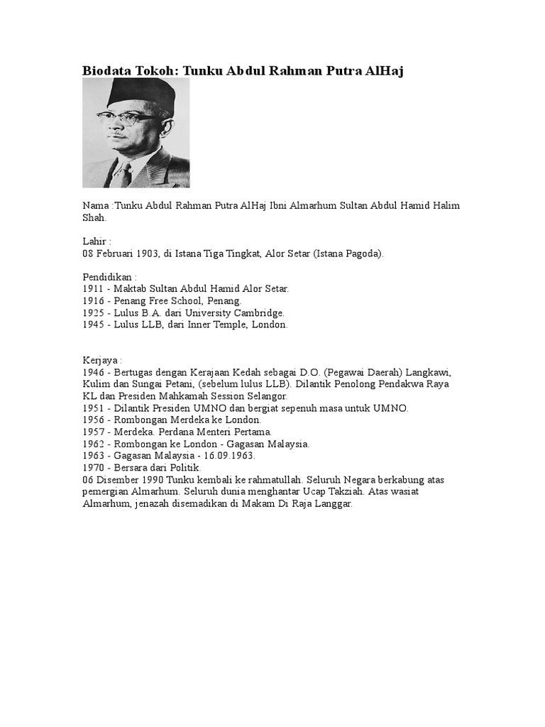 Doc Biodata Tokoh Tunku Abdul Rahman Rozie Zor Academia Edu